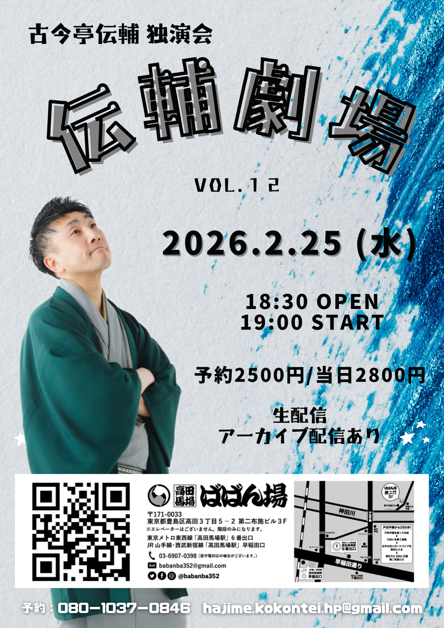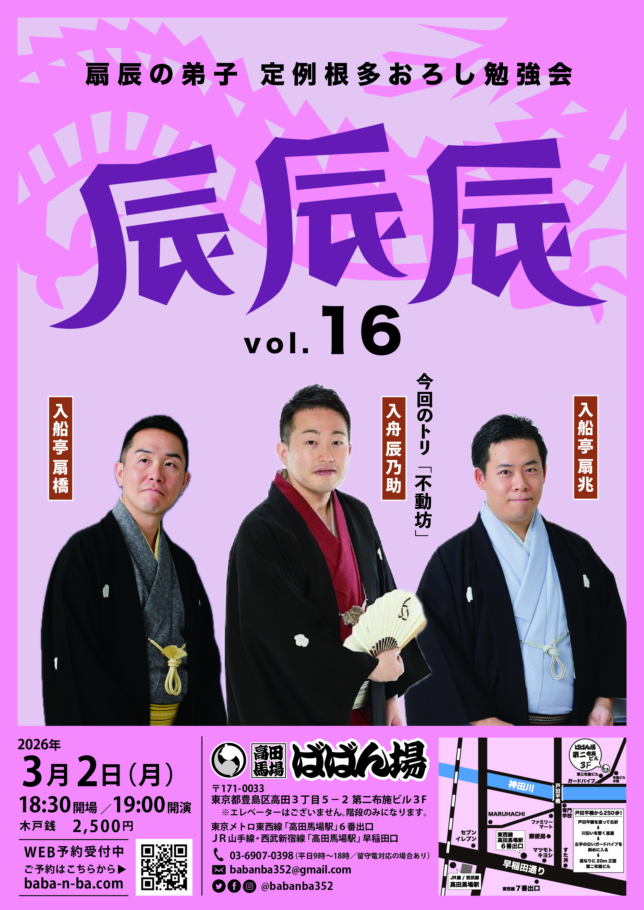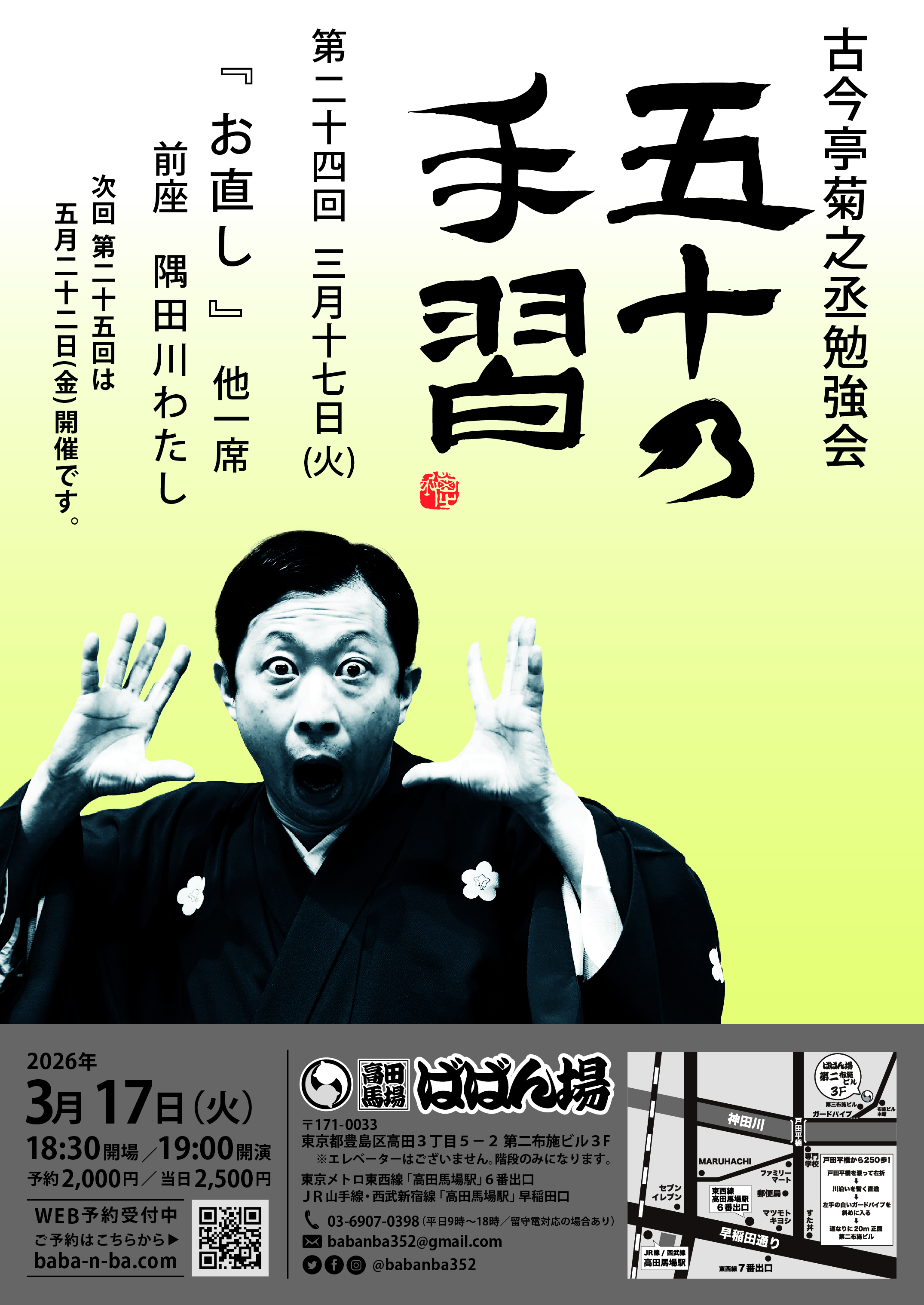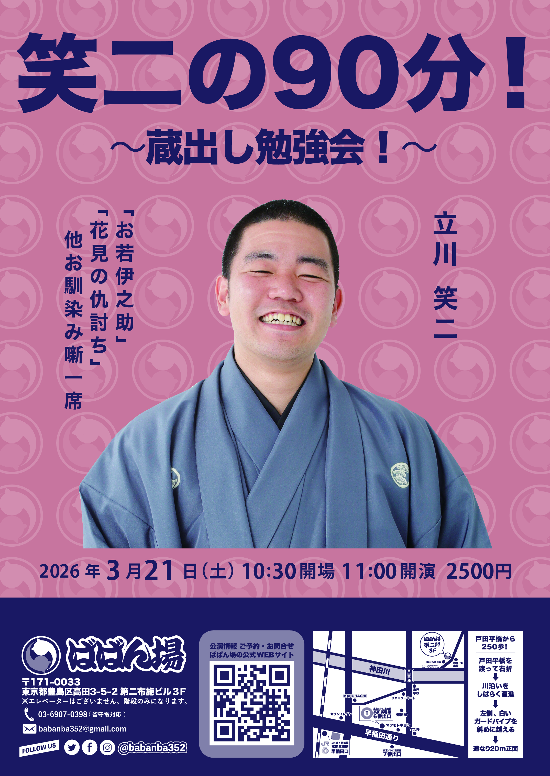 前座勉強会18:30開場/19:00開演木戸銭1,000円[出演]柳亭小痴楽三遊亭ば馬柳亭いっち