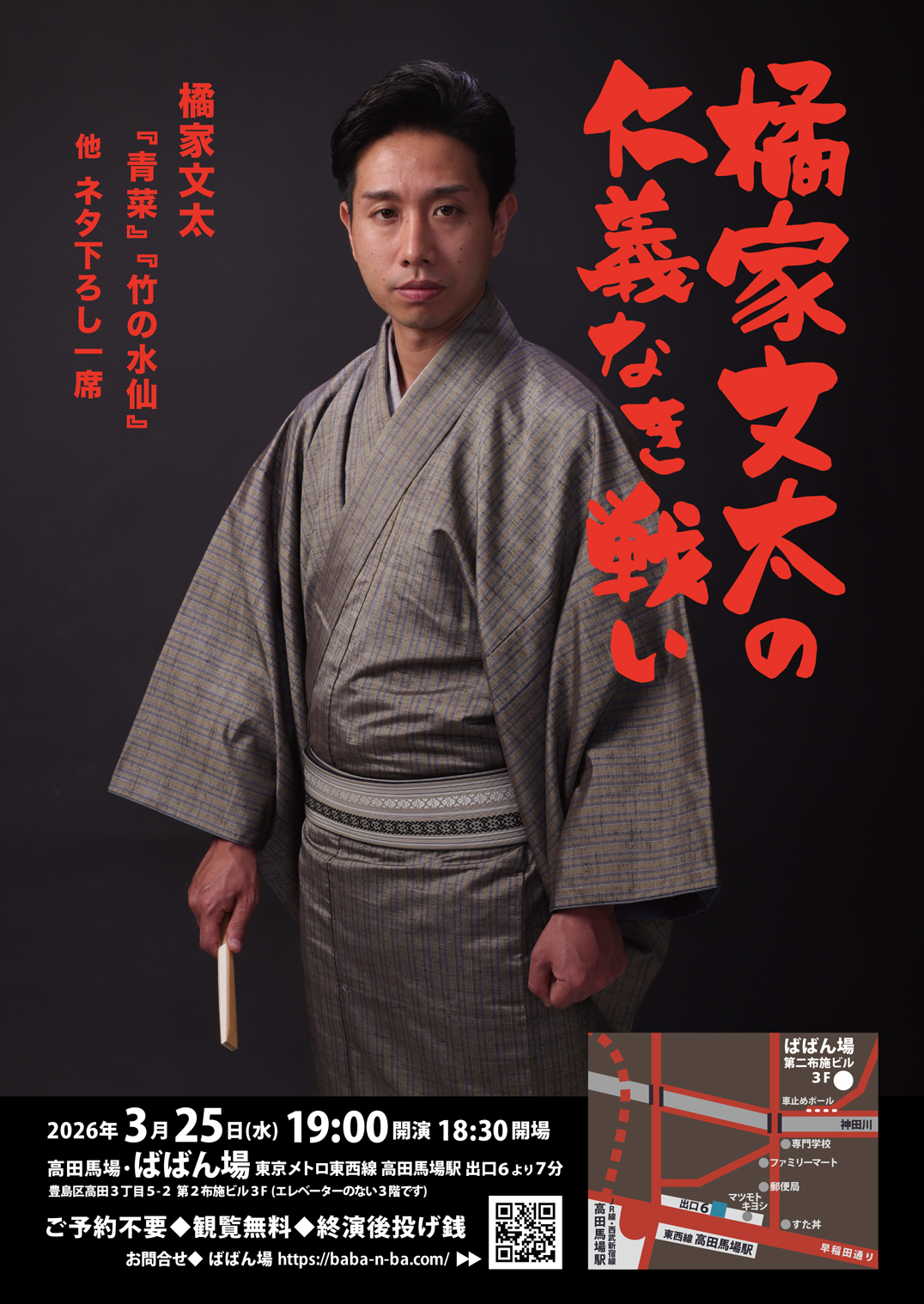 桂吉坊独演会18:30開場/19:00開演木戸銭3,000円[出演]桂吉坊打ち上げあり(別会費3,300円)※ご予約の際に、打ち上げに参加or不参加をお選びください