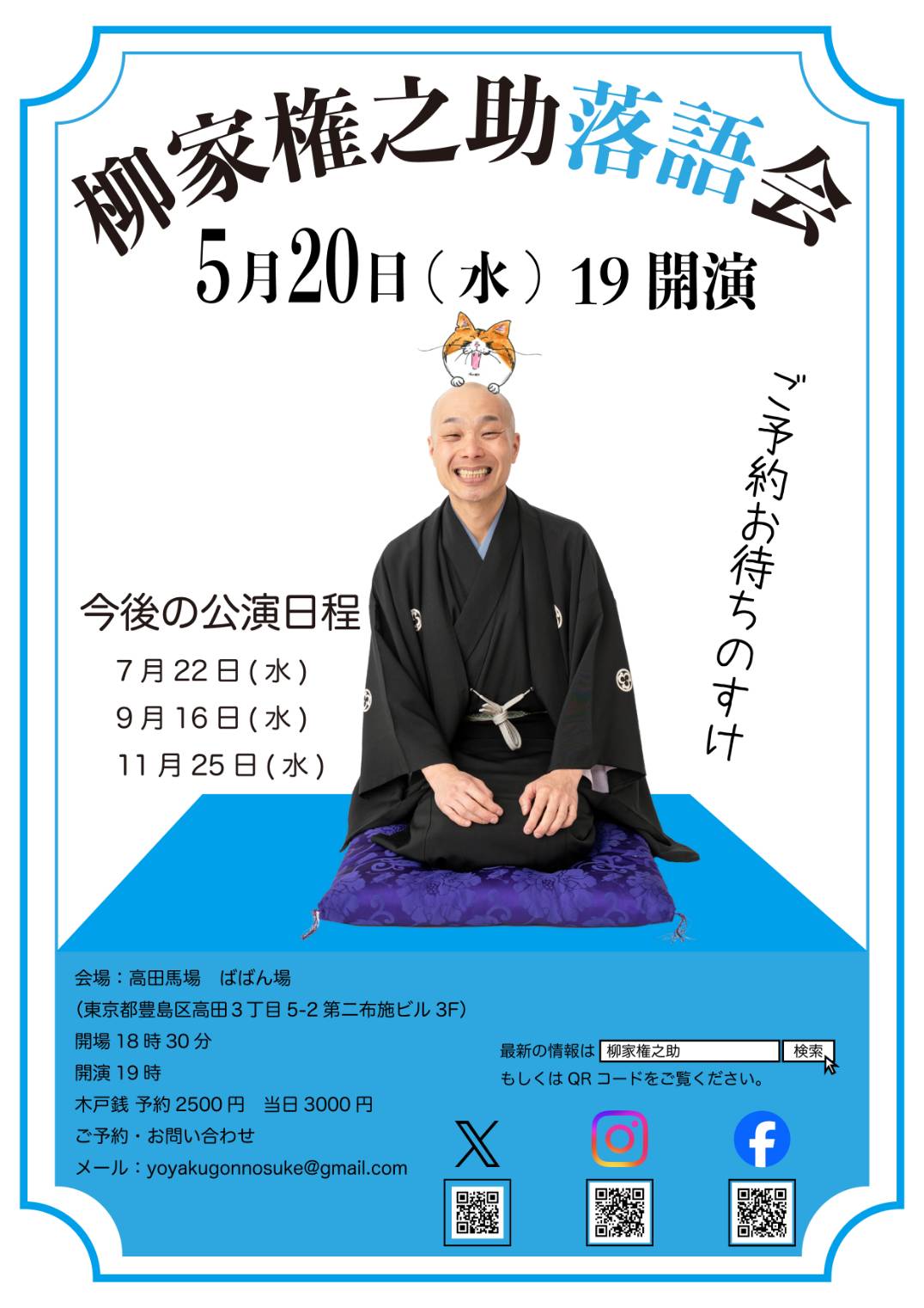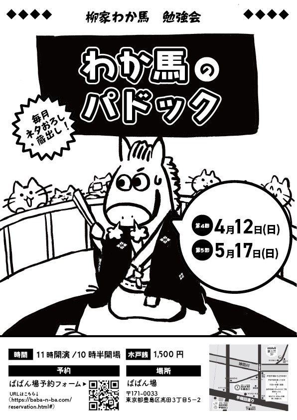 柳家わか馬 勉強会「わか馬のパドック」10:30開場/11:00開演木戸銭1,500円[出演]柳家わか馬